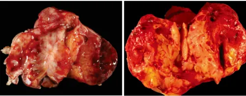 图1:大体图片,肿瘤表面光滑,可见包膜,切面呈囊实性,可见出血坏死(图片来源于网络)