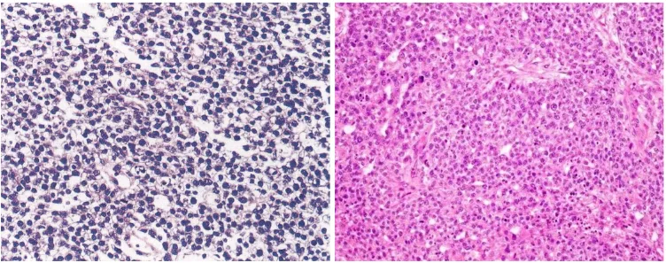 9.实性型,有胚芽样细胞和透明细胞两种,排列呈实性或片状(图10)。