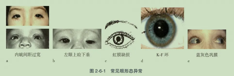 重点关注睑裂、眼距、眼睑、睫毛、虹膜、角膜、巩膜等眼外部结构。这类异常在儿童中较常见,常伴随特殊面容,是临床筛查的关键切入点。