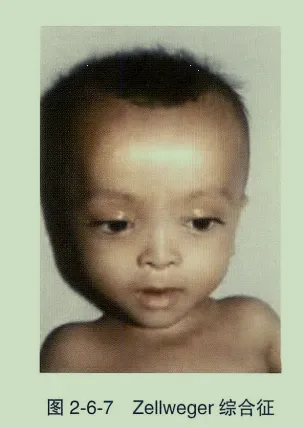 - Zellweger综合征(脑肝肾综合征):常染色体隐性遗传。眼部表现为眼外眦赘皮、晶状体混浊、青光眼、角膜混浊、视网膜发育不全。全身伴面部畸形、肝大、黄疸及神经系统症状。