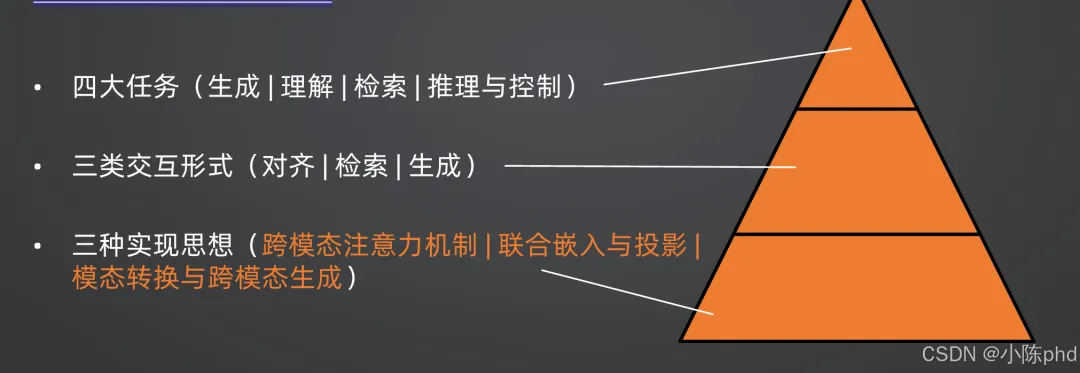 - 2. 语义异质性:同一语义可通过不同模态表达,模态间无直接语义映射。例如,“一只猫”可以用一张猫的图片、“喵”的叫声或“cat”这个词来表达,但这些数据本身没有直接的数学对应。