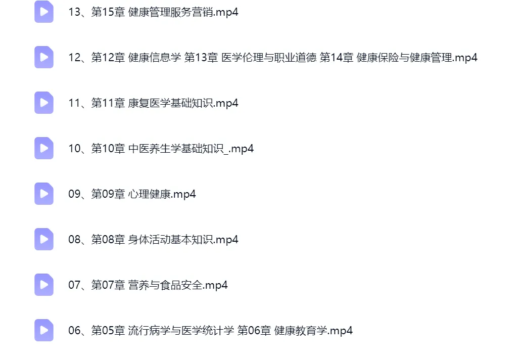 【健康管理师资料】健康管理师学习课程资料(基础知识+职业技能)视频+讲义