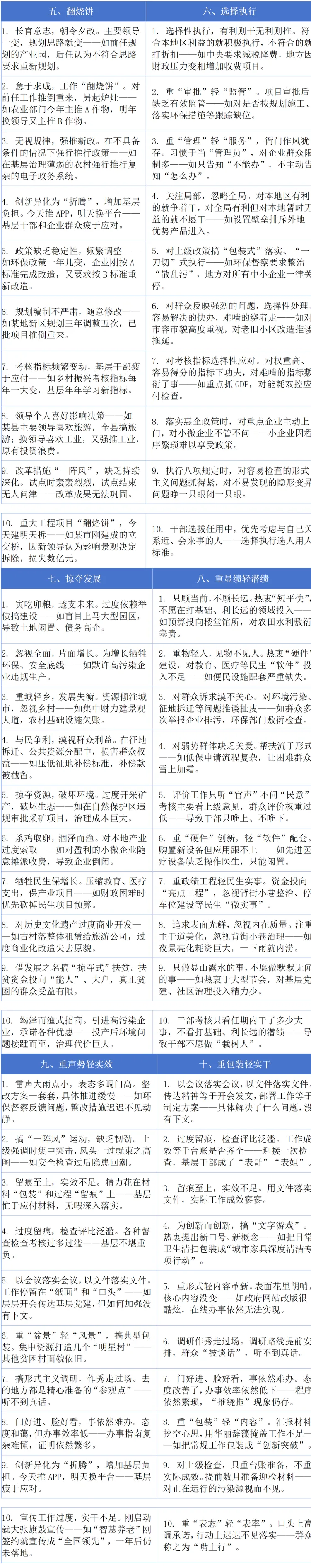 为便于各级领导干部在学习教育中对照查摆、反躬自省,我们梳理了重点纠治的十种政绩观偏差问题及其具体表现。这100条对照清单,不求面面俱到,但求直指问题、便于对照,供大家收藏备用、时常自省。