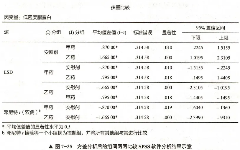 此处仅介绍单因素方差分析后的组间两两比较。比较常见的两两比较方法有LSD-t检验、Dunnett-t检验和SNK-q检验