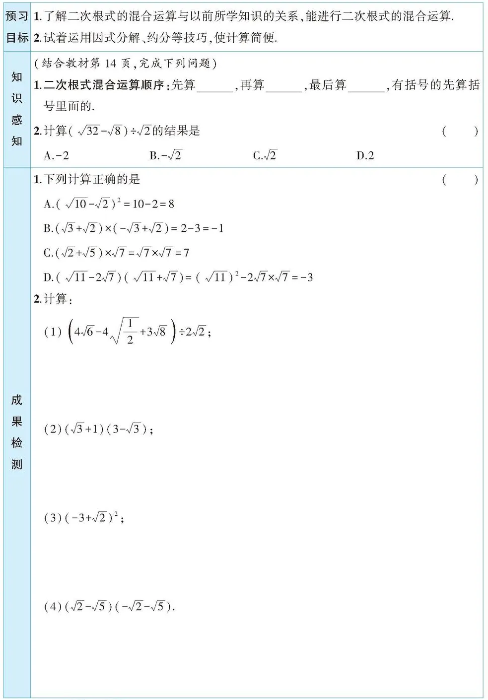 第2课时二次根式的混合运算