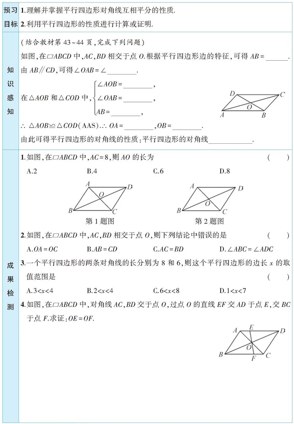 第2课时 平行四边形的对角线特征