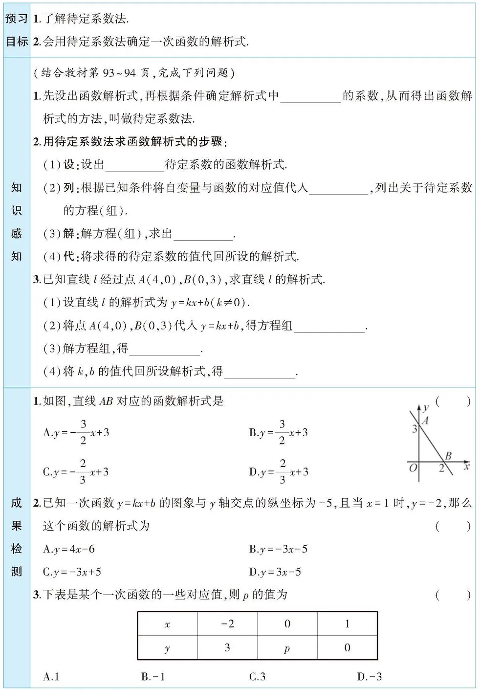 第 3 课时 用待定系数法求一次函数的解析式