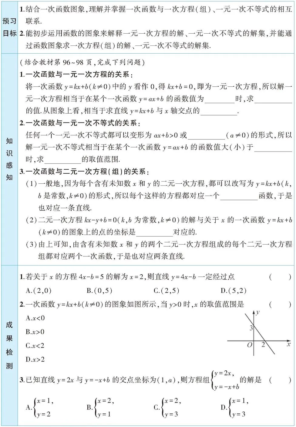 19.2.3 一次函数与方程、不等式