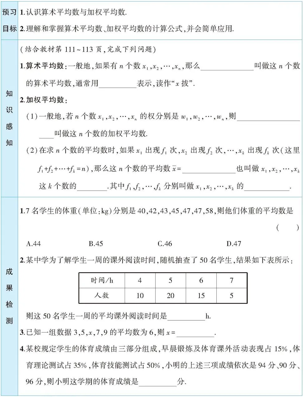 第 1 课时 算术平均数与加权平均数