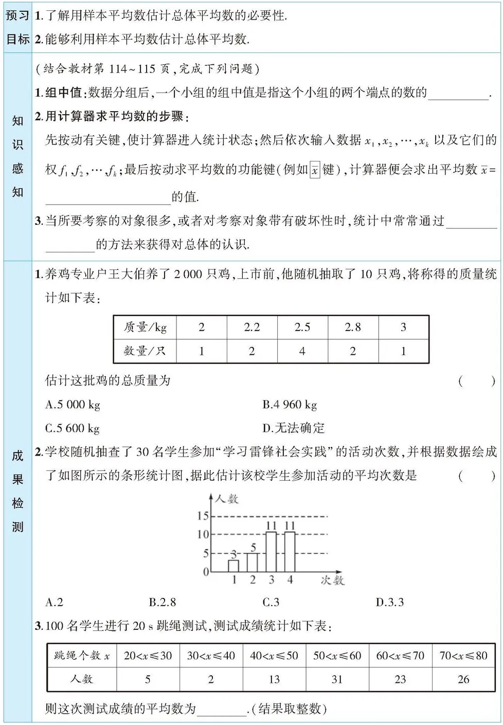 第 2 课时 用样本平均数估计总体平均数