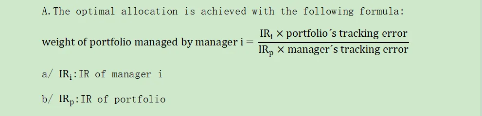 B.For a given group of active managers,the weight may not sum to 1.The remainder of the weight can be allocated to the benchmark,which has no tracking error.