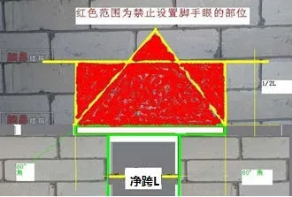 ②过梁上与过梁成60°角的三角形范围及过梁净跨度1/2的高度范围内。