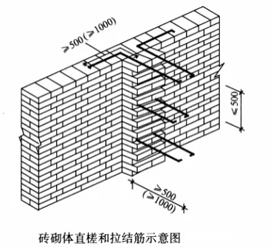1)每120mm墙厚放置1Ф6拉结钢筋(240mm厚墙应放置2Ф6拉结钢筋)。