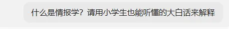 我个人听到“情报学”这个词以后的第一反应,就是谍战片里的地下工作者、搞军事情报的,还有商业活动中搞商业情报的,我觉得“情报学”可以跟这些内容有关?但是,我想想,为了保险起见,我还是来问问“豆包”吧。用小学生都能听懂的大白话讲: