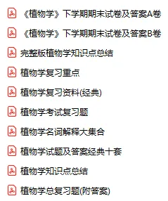 今天分享的资料是「0150-植物学」电子版+学习笔记+知识点总结+期末考试重点+复习资料+习题集及答案+名词解释+历年真题试卷及答案+题库及答案+复习重点+思考题及参考答案+公式总结+考试重点基础题+知识总结+高清PDF可打印+免费分享!