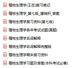 今天分享的资料是「0136-植物生理学」电子版+学习笔记+知识点总结+期末考试重点+复习资料+习题集及答案+名词解释+历年真题试卷及答案+题库及答案+复习重点+思考题及参考答案+公式总结+考试重点基础题+知识总结+高清PDF可打印+免费分享!