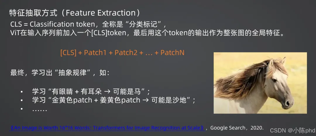 [CLS],训练完成后,该标记的输出即可作为整张图像的全局特征,用于后续任务。