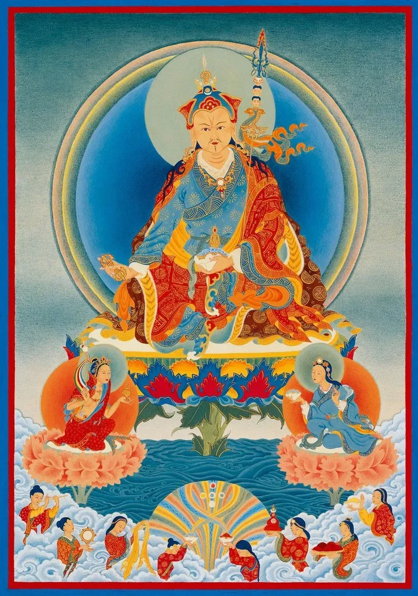 主尊莲师由勇士空行三根本护法神层层围绕。