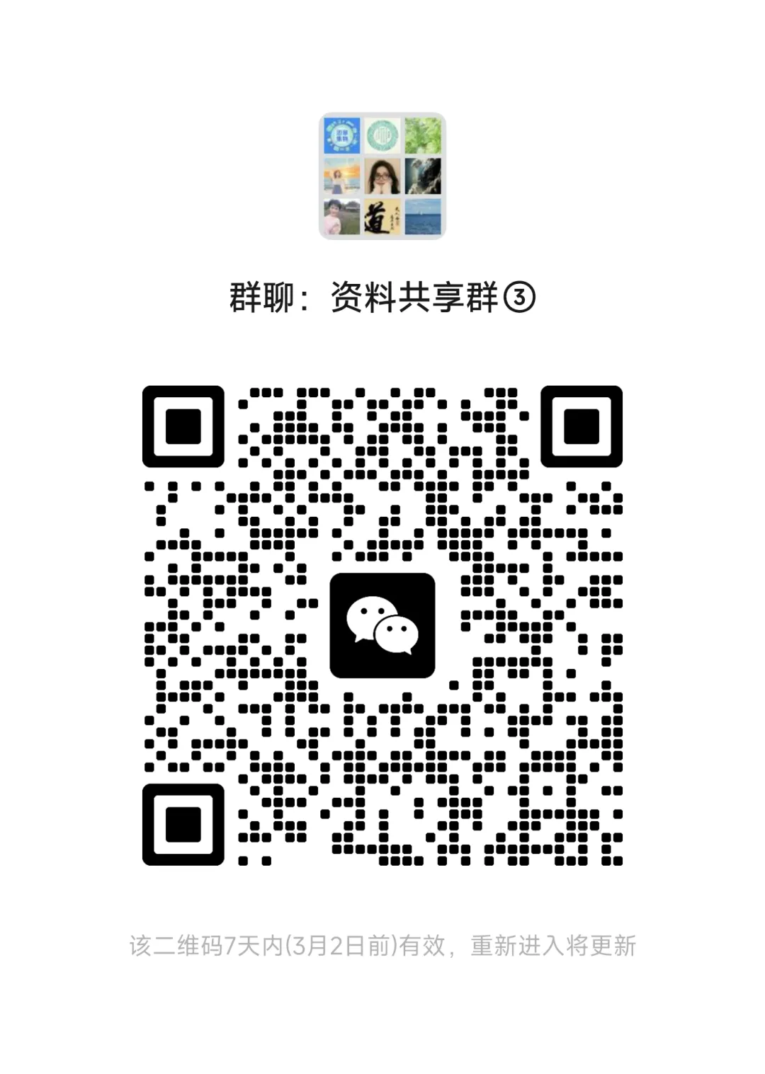 本资料共享群旨在为小伙伴们提供一个纯粹、高效、安全的交流环境。群内资料以自主共享、互助交流为主,大家可自行沟通、互相询问所需资料。泠泉会不定期在群内分享整理好的资料,但不提供一对一资料代找服务。