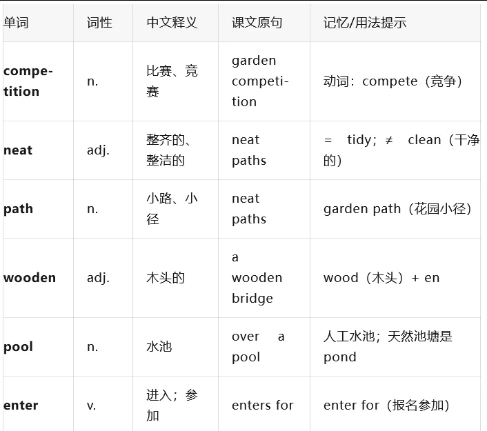 三、本课核心词汇表