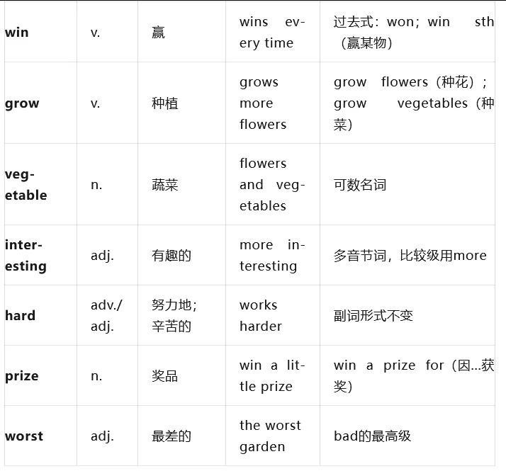 课文重点词汇