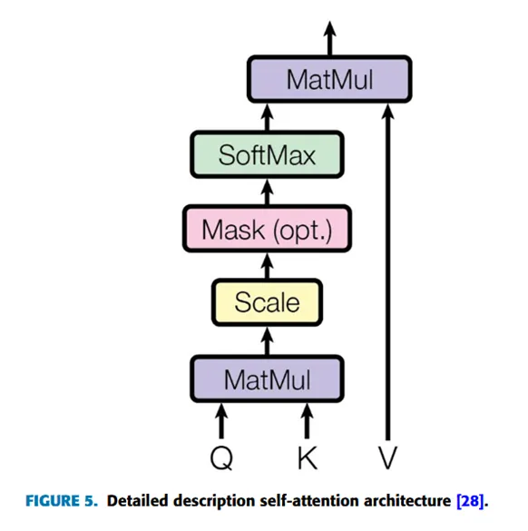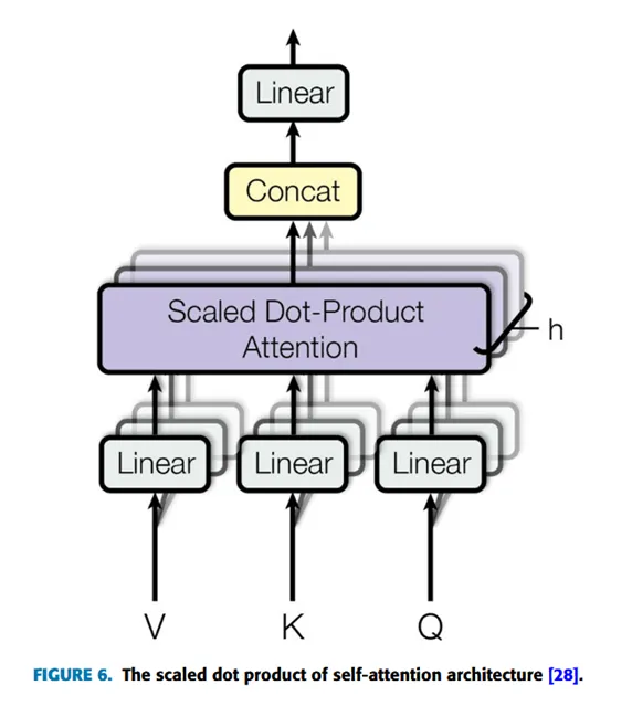 Transformer 架构:Vaswani 等人在他们的研究中提出了三个主要概念,如FIGURE 4 所示,包括自注意力机制(self-attention),该机制允许模型根据输入序列的重要性进行评估,从而减少长程依赖;多头注意力机制(multi-head attention),使模型能够以多种方式学习输入序列;以及词嵌入(word embedding),将输入转换为向量表示。