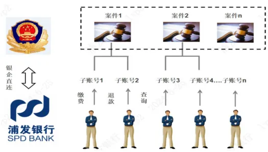 该方案实现监管系统与银行系统关联,通过对主银行账户进行处理,生成千万级电子账簿子账号,与公安警综平台数据交互,将电子账簿子账号分配给每个法律文书,实现“一人一案一账号”。电子账簿子账号可直接用于对应案件案款缴纳、退还、利息结存。涉案资金与保证金监管系统可提供款项管理和案件管理,并为当事人、缴款人、警方提供多维度的服务支撑,有效弥补了原有涉案资金、保证金账户功能不全,款项与案件不能一一对应的弊端,有效解决了民警在案款发放工作中随意性大,返还不透明等问题。同时该系统通过“T+1”对账模式,以系统文书和银行流水数据比对,可实现未达资金与异常资金的及时发现、处理,大幅减轻了公安财务人员记账、对账负担。