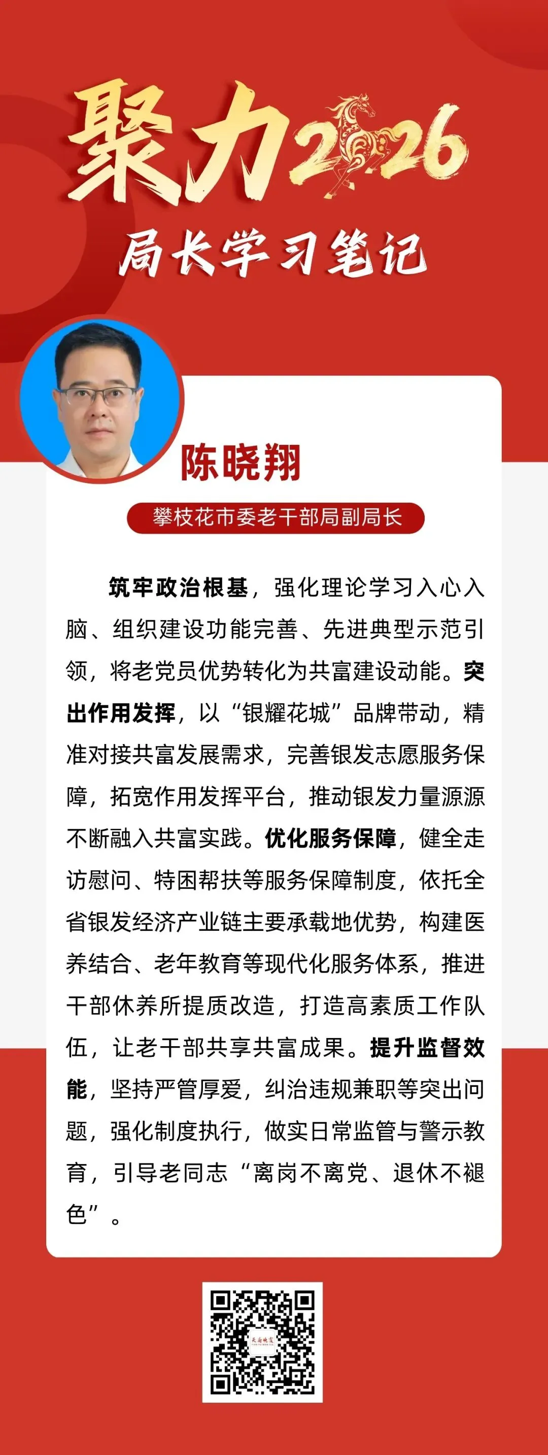 春启新程,号令已发。2月10日,全省老干部局长会议在成都召开,为2026年全省老干部工作定方向、明任务、划重点。现将各市(州)委老干部局局长学习笔记整理刊发,供全省老干部工作系统学习交流。