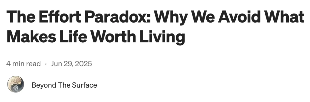 补充材料🔗:https://beyond-the-surface-mdm.medium.com/the-effort-paradox-why-we-avoid-what-makes-life-worth-living-529776e7b4a1