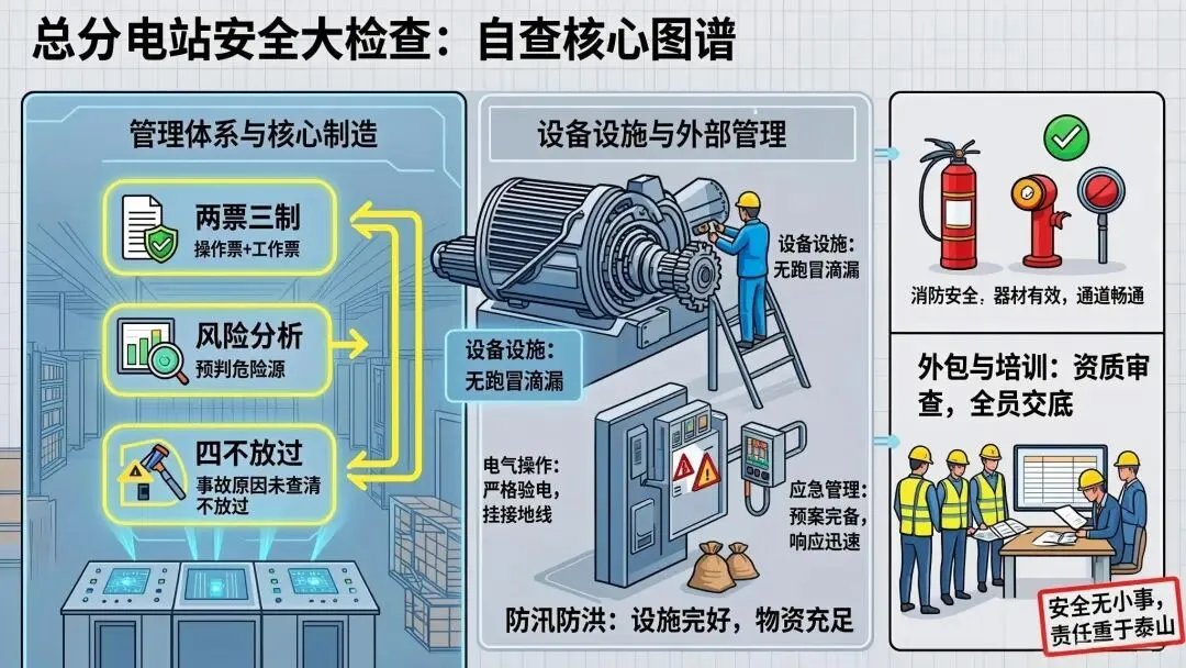 为全面贯彻《中华人民共和国安全生产法》《光伏电站安全规程》(GB/T 35694-2017)等法规标准,落实光伏电站安全生产主体责任,提升设备可靠性及运维规范性,现结合电站实际运行特点,制定本年度安全生产运维自查表。本表覆盖设备安全、管理规范、环境风险三大核心模块,涵盖电气系统、结构安全、消防管理、应急响应等关键环节,旨在通过系统性排查,实现隐患动态清零,保障电站安全稳定运行。