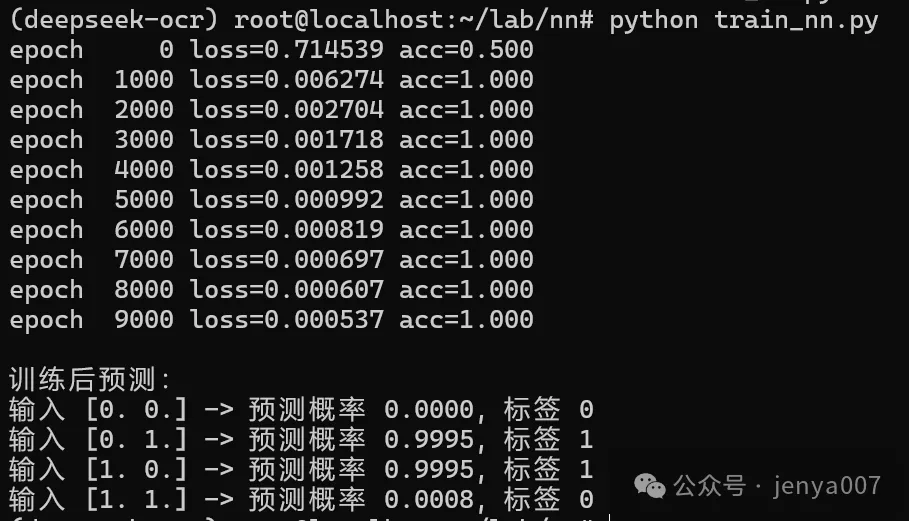 该神经网络用来学习 XOR(异或)这个二分类问题。
