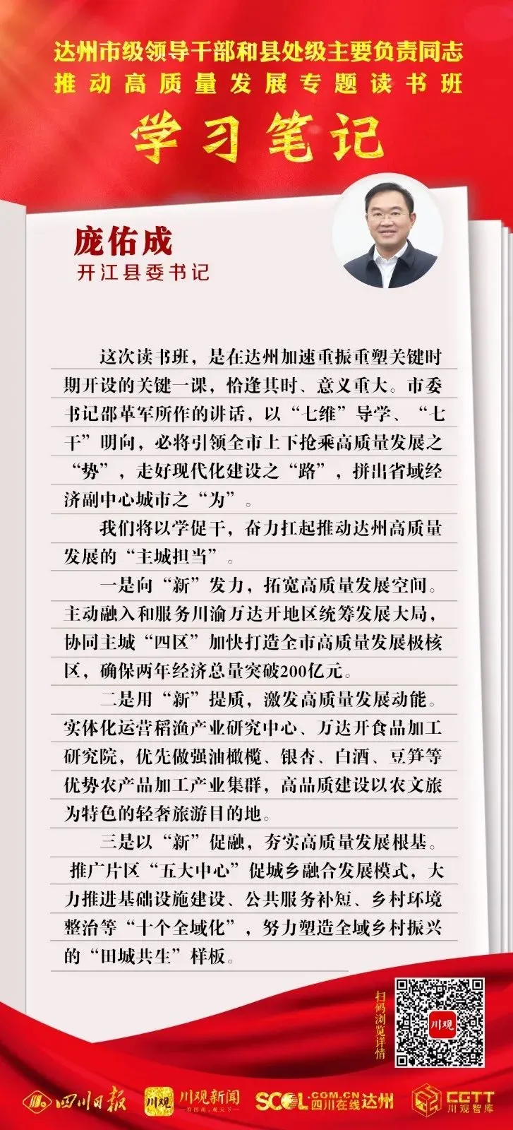 我们将以学促干,奋力扛起推动达州高质量发展的“主城担当”。