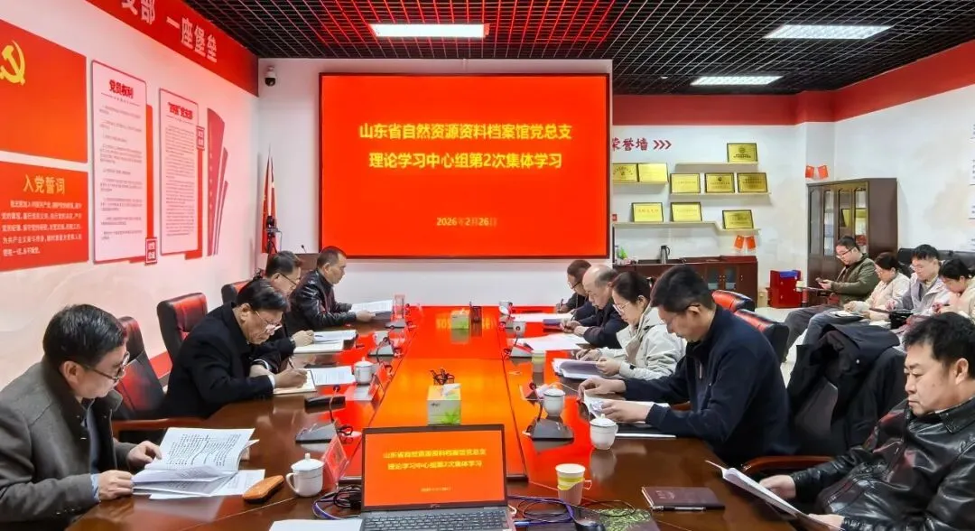 2月26日,省自然资源资料档案馆党总支理论学习中心组开展2026年第2次集体学习,馆班子成员、各科室负责人、青年理论学习小组代表参加学习。