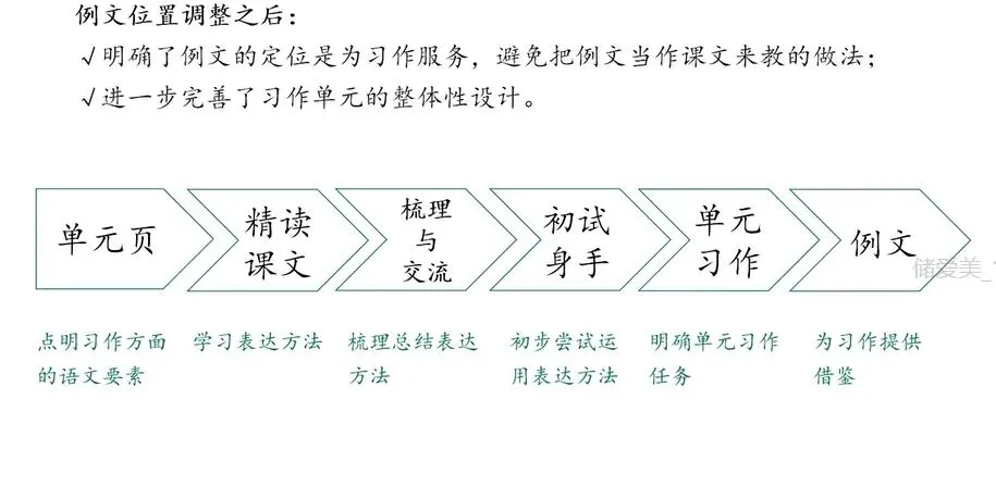 一般由习作明确单元的习作任务,例文为习作提供参考借鉴。为什么要做这样的调整呢?