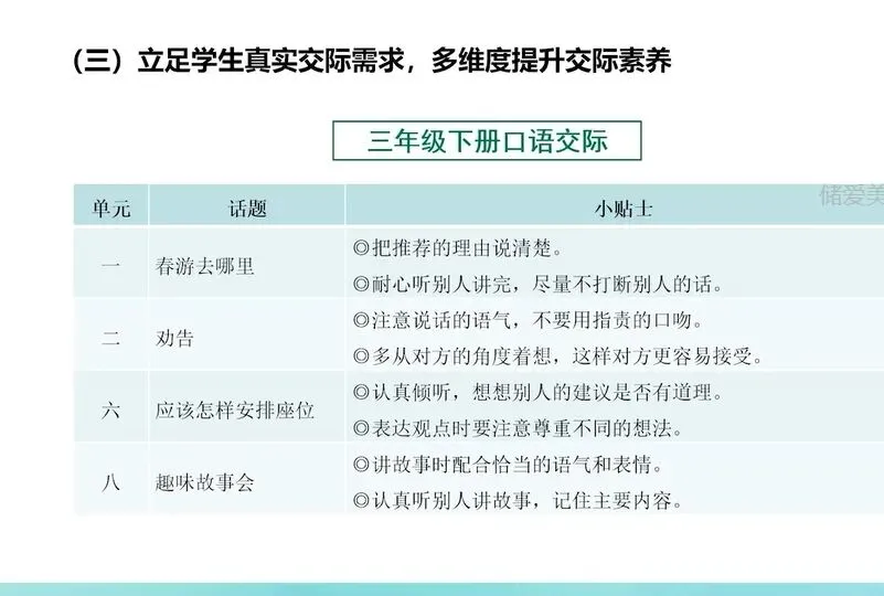 第三方面特点是立足学生真实交际需求,多维度提升交际素养。
