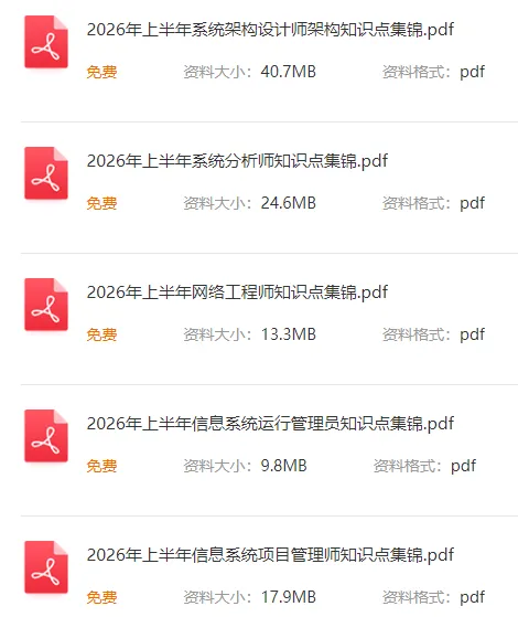 👇点击下方图片,选择考试科目,免费获取完整PDF版👇👇点击下方图片,选择考试科目,免费获取完整PDF版👇👇点击下方图片,选择考试科目,免费获取完整PDF版👇👇点击下方图片,选择考试科目,免费获取完整PDF版👇听讲师分析知识脉络,讲解重点与难点,考生可系统化学习知识体系,在较短时间内建立知识框架,避免自学可能产生的知识盲区与理解偏差。希赛网专注软考培训25年,教学经验成熟,课程也具有极高的针对性,讲师也有多年的实践经验和教学经验。
