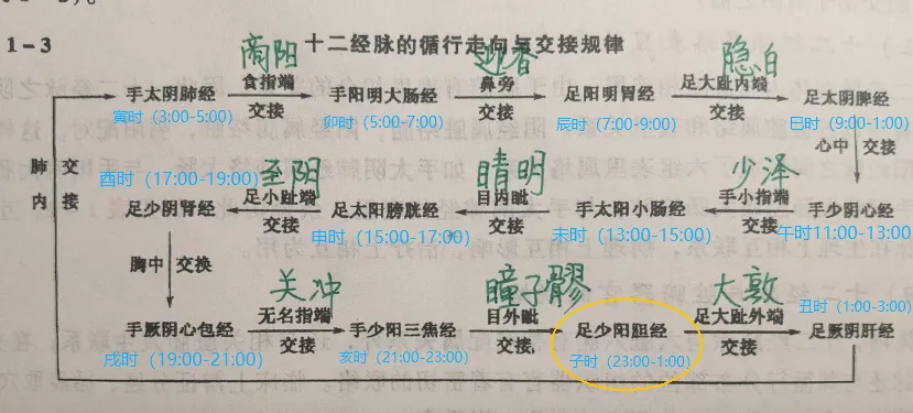 足少阳胆经的气血流注时间是戌时(23:00-1:00)。
