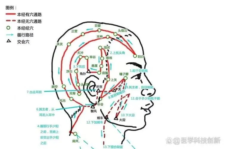 足少阳胆经从头到脚、循行全身,上通头面耳目,中连肝胆情志,下主腰腿筋骨。它不只是一条经络,更是我们身体的疏泄通道、情绪出口、决断之源。