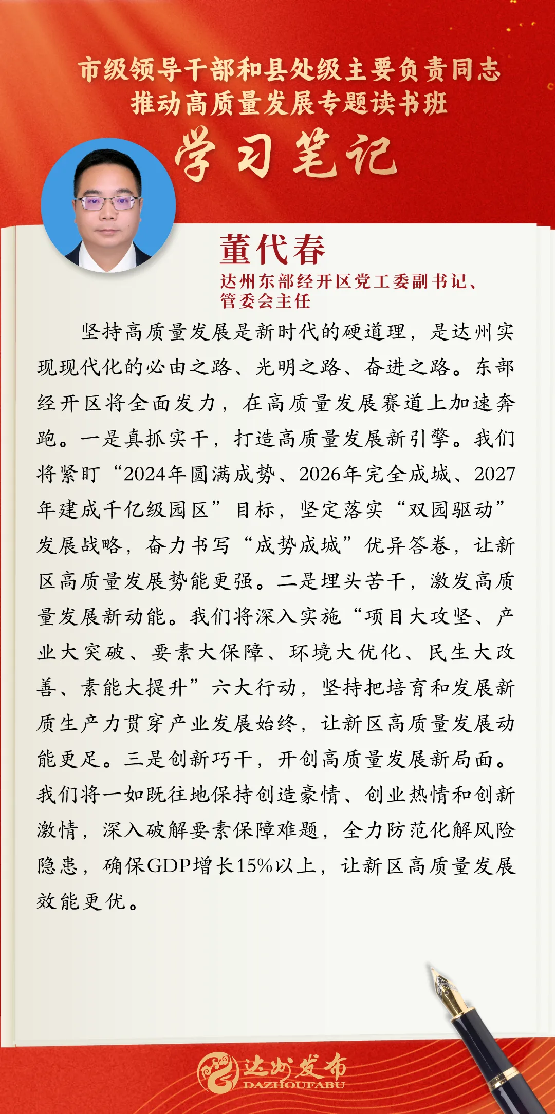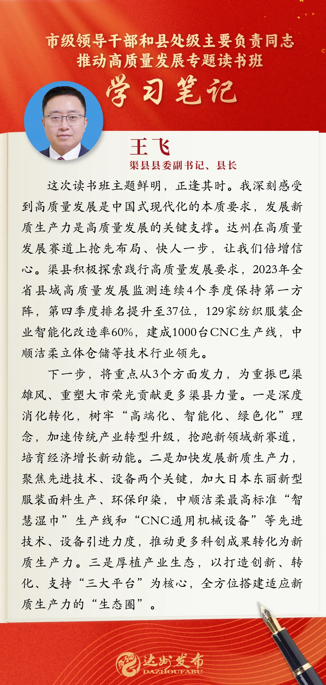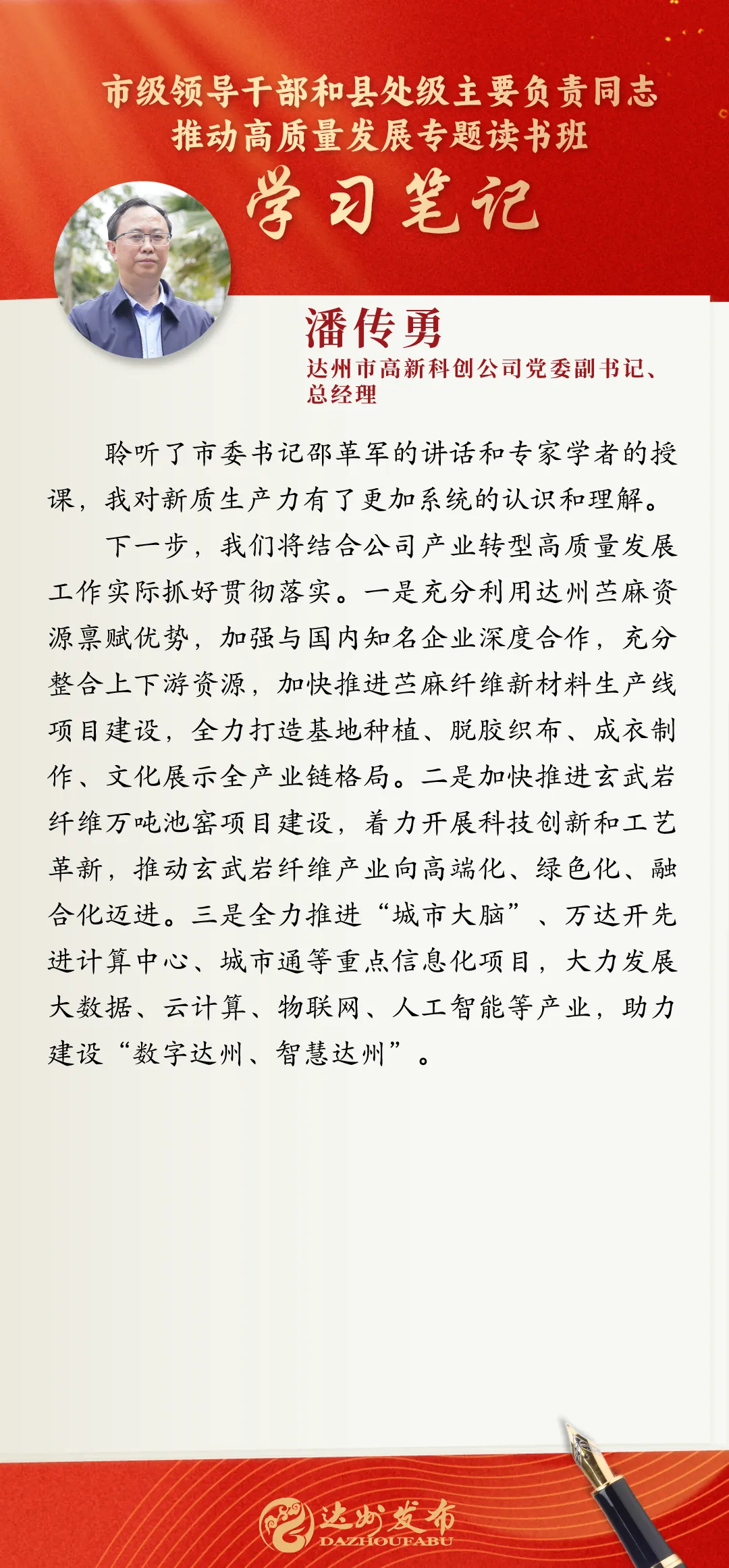 读书班期间,学员们专注聆听专题辅导,认真细心细致记录、广泛开展课后交流,力求做到入脑入心;在分组讨论时,学员们又将理论知识与自身工作领域结合踊跃发言、分享感悟和心得体会,营造出热烈活跃的氛围,力求在研讨交流中真正做到学深悟透,为重振巴渠雄风、重塑大市荣光贡献更多力量。
