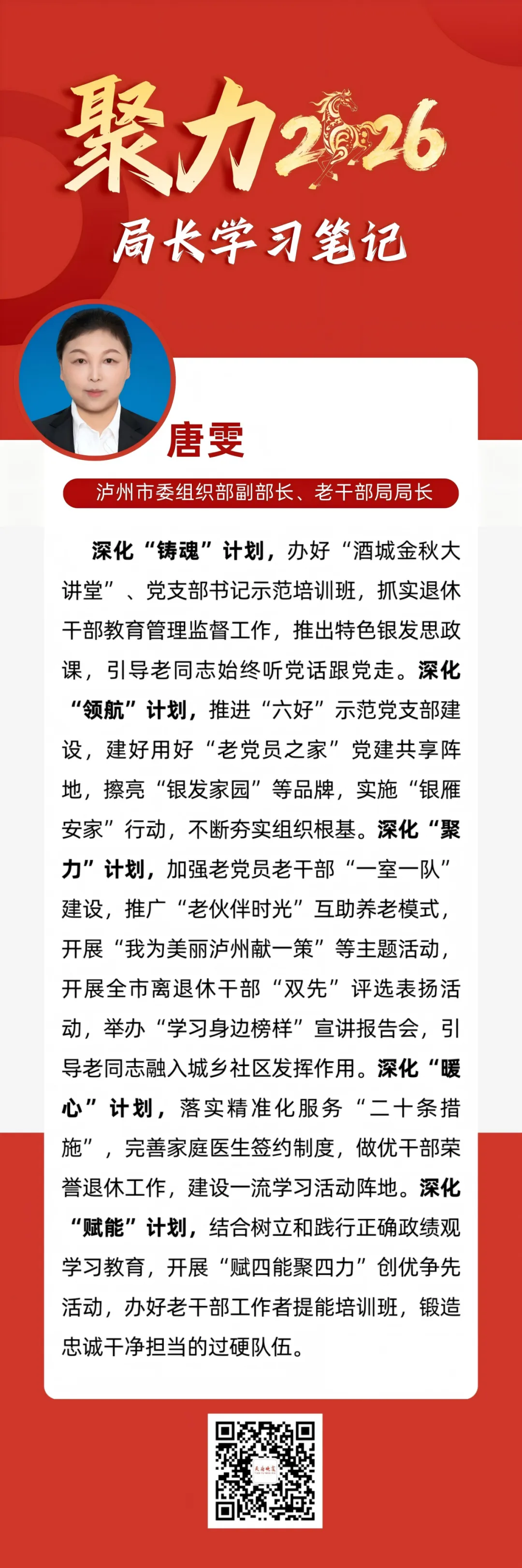 春启新程,号令已发。2月10日,全省老干部局长会议在成都召开,为2026年全省老干部工作定方向、明任务、划重点。现将各市(州)委老干部局局长学习笔记整理刊发,供全省老干部工作系统学习交流。