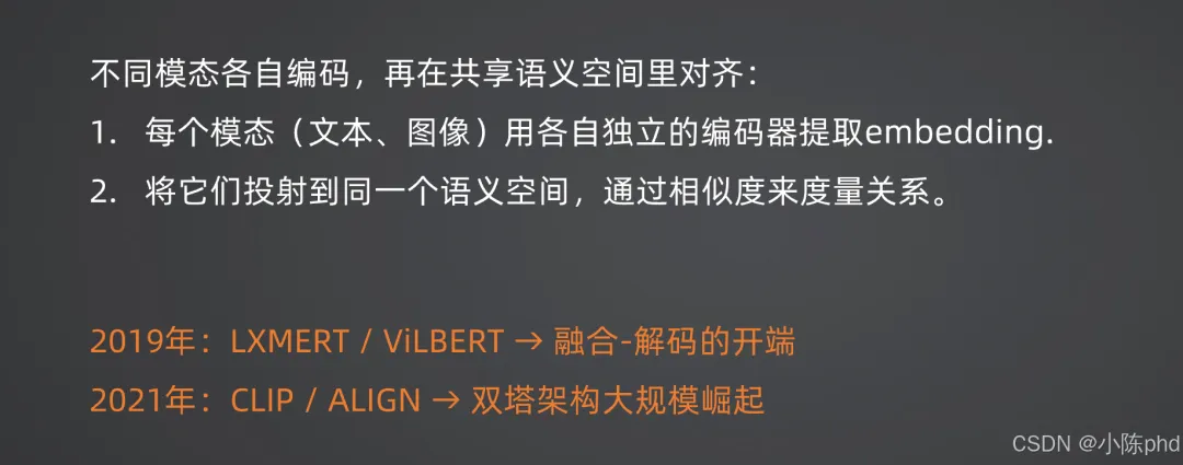 - • 2021年:ALIGN(Google)与CLIP同期提出,同样采用双塔对比学习范式;