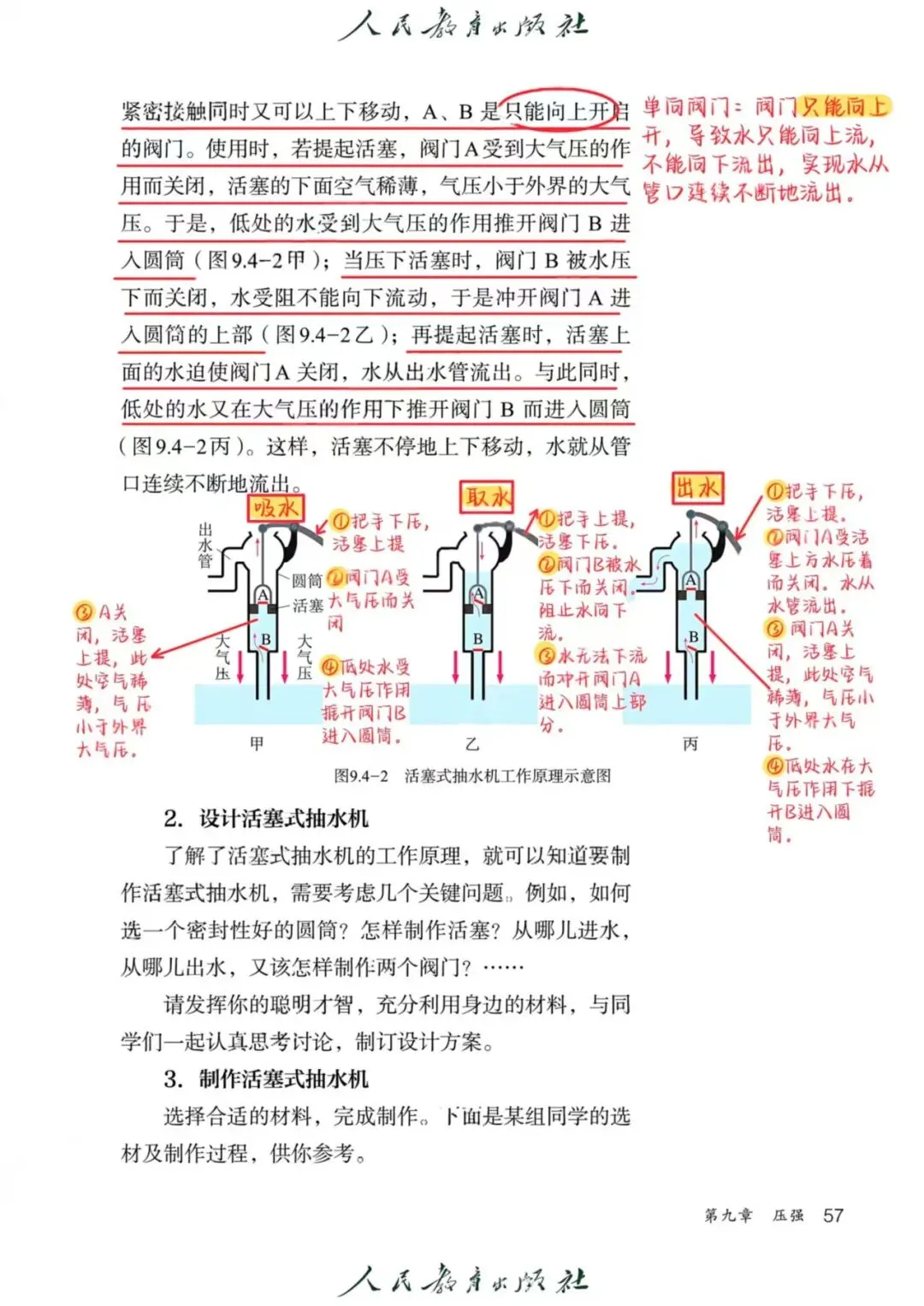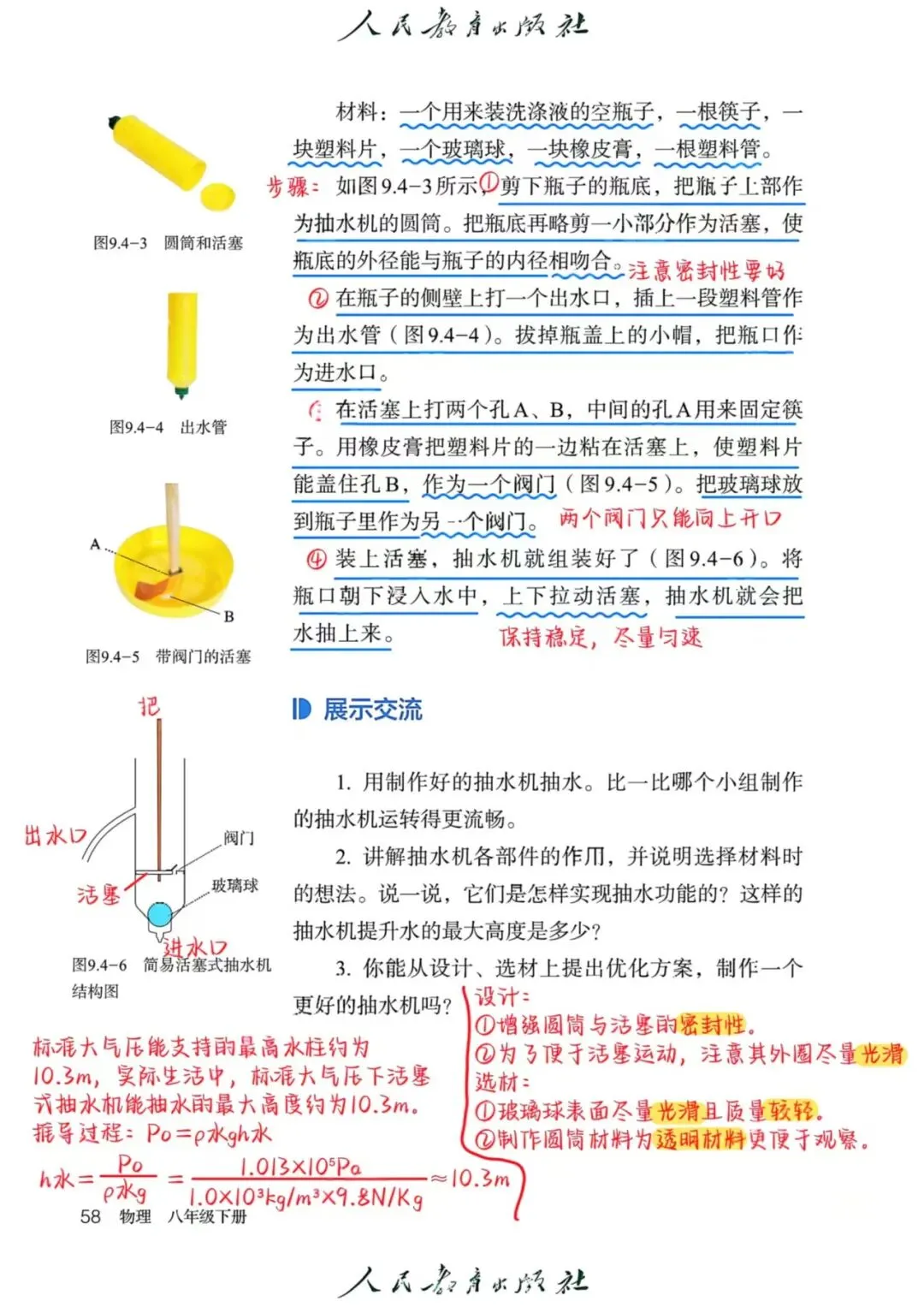 【教材学习笔记】人教版八年级下册物理-9.4跨学科实践:制作简易活塞式抽水机