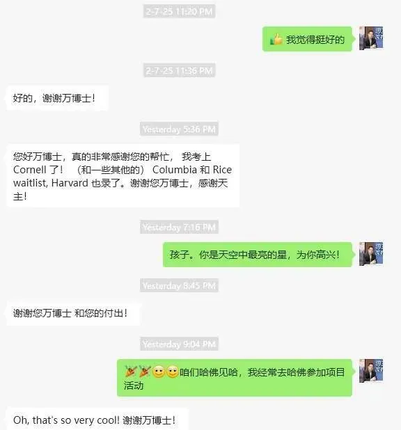 万博士及其团队深知华人家庭的特性,也知道含蓄的华人家庭中,想要开发孩子的潜力,需要深度了解并帮助他们剖析自身的优势和兴趣点。他们从不把大学申请当作流水线上的商品,每一个家庭背后,都有未说完的故事、未完成的寄托。