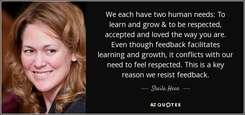 赫恩说,“但是真的有完美表述的反馈吗?”她停顿一下,接着说,“你是不是想告诉她,永远都不要给你反馈啊?”