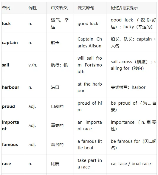 课文的标题"Goodbye and good luck"既是对远航者的祝福,也体现了英国人对航海者的敬意。小艇"Topsail"的名字也很有意味——top sail是帆船术语,指"顶帆"或"中桅帆",这个名字本身就带有浓浓的航海气息。