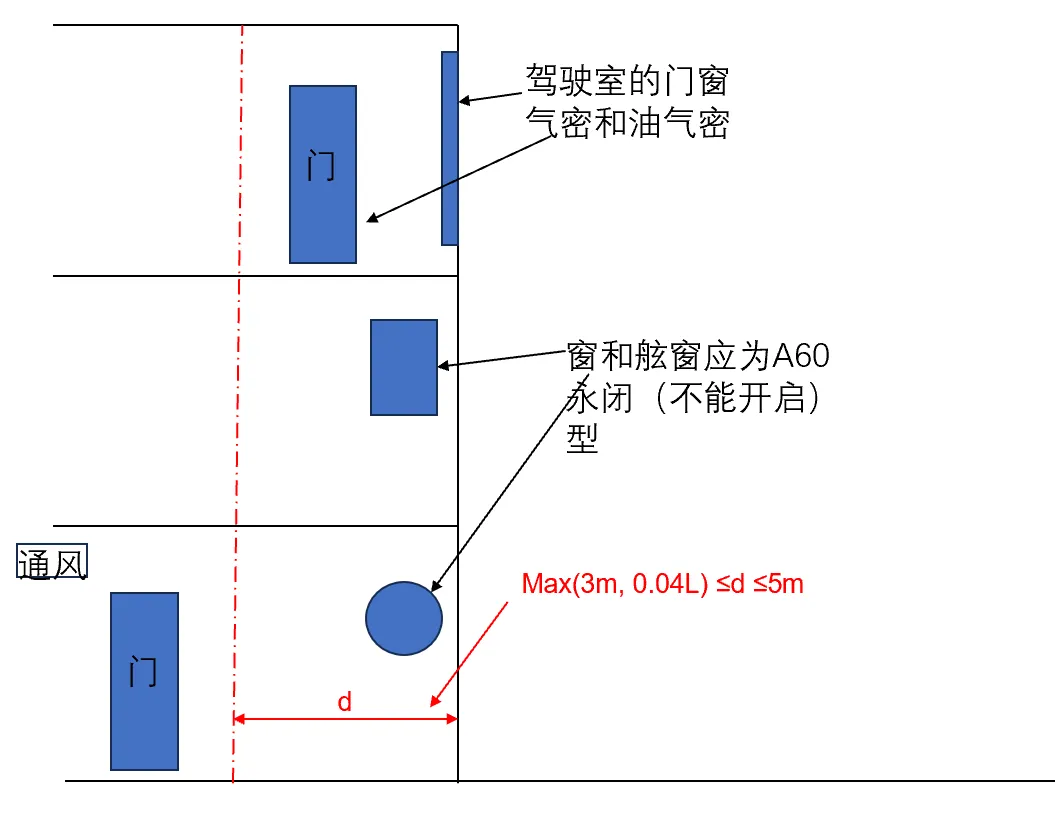3. 驾驶室门窗:可在5m限制范围内设置,核心要求为设计能保证驾驶室迅速、有效实现气密和油气密。