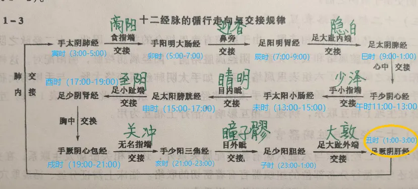 足厥阴肝经的气血流注时间是丑时(1:00-3:00)。