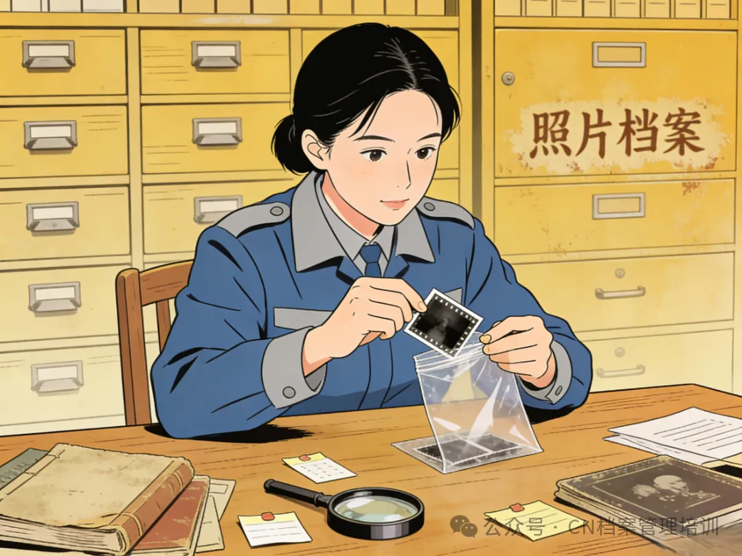 整理时佩戴手套,禁止用手触摸照片乳剂面和底片,避免折叠、划伤、污渍污染;大幅照片需垫衬柔软中性纸后,放入专用档案袋或档案盒,禁止折叠存放。