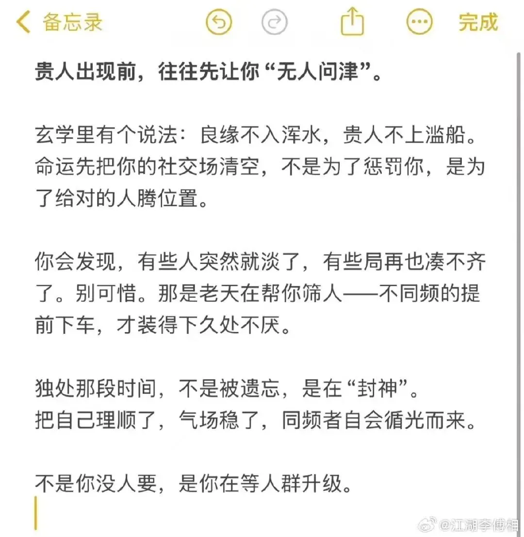 咱们要明白一个道理。朋友不是固定的,是流动的,你换了一个大运,你身边的朋友几乎都会换一个遍,甚至和亲人关系都会由深变淡、由浅变深。