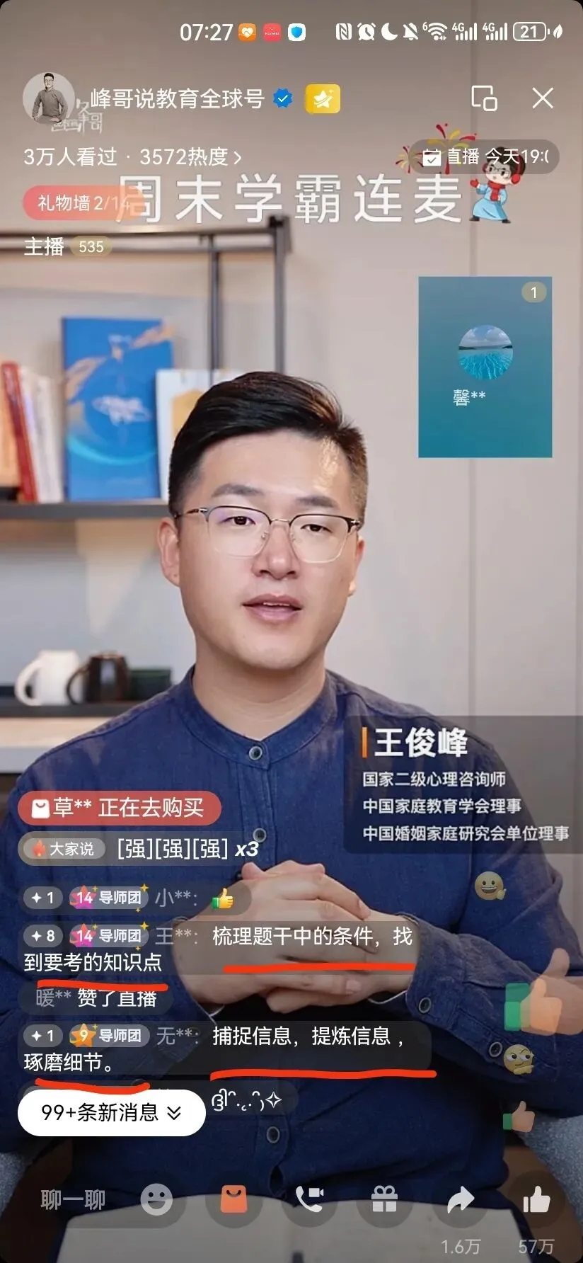 早起读书学习,听峰哥直播间也有一段时间了。清晨在峰哥直播间,连麦学霸的真实分享,让我对中高考提分又有了更深的认知。原来真正拉开差距的,从来不是刷了多少题,而是有没有学霸思维、有没有命题人思路。
